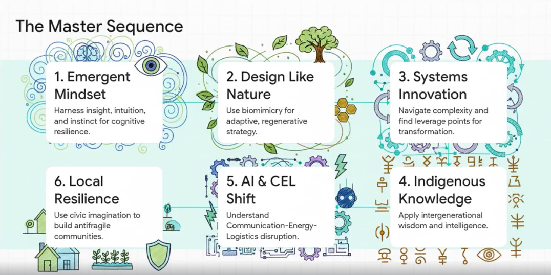 Small brain. Complex behavior. Intelligence does not scale linearly with volume. If you were designing like a Futurist-in-Residence for a world rearranging itself under technological acceleration, you could do worse than begin here. The Futurist does not chase every signal. They build a web. Social, digital, intellectual. They cultivate sensors attuned to weak vibrations before they become visible trends. They treat artificial intelligence not as an oracle but as silk, extending perception beyond the limits of unaided cognition.